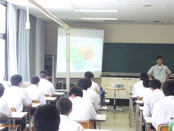 ![]() 第1回目を6月23日に1年生対象で行い、今回第2回目として3年生対象で「リレー」について講義してもらいました。 また、実習で取り組んでいるマイクロロボットの製作支援もしていただいています。 |