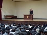 校長先生より、年末年始の過ごし方や3学期を迎えるにあたっての心構えなどのお話がありました。