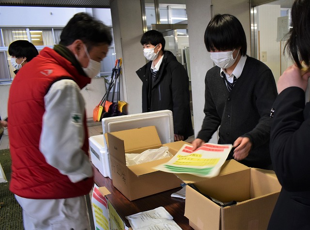 1月18日(水)の放課後、本校正面玄関と中野市役所で商業科目「商業開発」販売実習と「信州の観光」の展示を行いました。