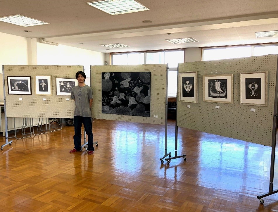 9月26日(木)1年生を対象に中島宗一郎さんの講演会を開催しました。中島さんは本校卒業生で現在画家として活動をされています。講演の前半は、ご自身のこれまでの歩みについてお話しいただきました。自分のやりたいことを探すために日本一周の自転車旅などをしながら、現在の画家という目標にたどり着いたそうです。そうした中で、自己を分析することや熱中できることへの努力・挑戦・失敗を恐れないことなどをお話しいただきました。後半は専門の美術について、自作の解説や使用画材へのこだわり、好きな画家などについてお話しいただきました。 今後、作品はしばらくの間、美術の授業や放課後に生徒が鑑賞できるよう校内に展示されます。