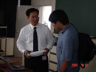 授業はパワーポイントを使いながら、「画像の品質」、「プリンターの歴史」についての話で始まり、図や表でプリンタの構造やインクジェット方式の特徴や原理などを説明したり、実際の製品を使っての説明があったりと分かり易い内容でした。小さな部品を製造する技術力、研究開発する上での発想の豊かさなど技術開発の最前線にいる講師 の話は興味深い内容で、生徒も大いに刺激になったと思われます。 この様子は同日の夜、TSB・SBCのニュースでも放映されました。なおこの様子は、10月17・18・19日の諏訪圏工業メッセ(東洋バルヴ)でもビデオ紹介がなされるとのことです。