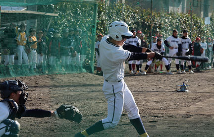 高校生のデモンストレーション打撃。迫力のあるバッティングに歓声が上がっていました。