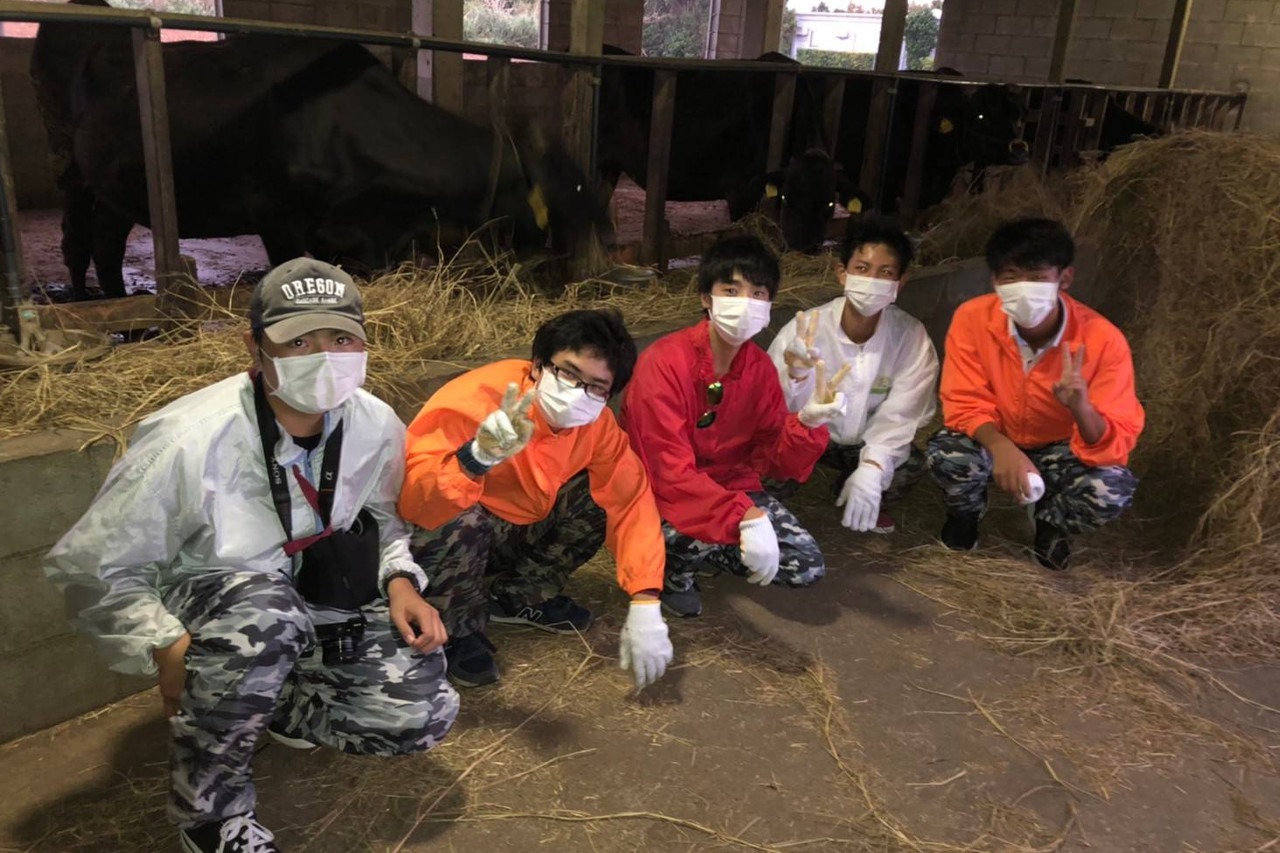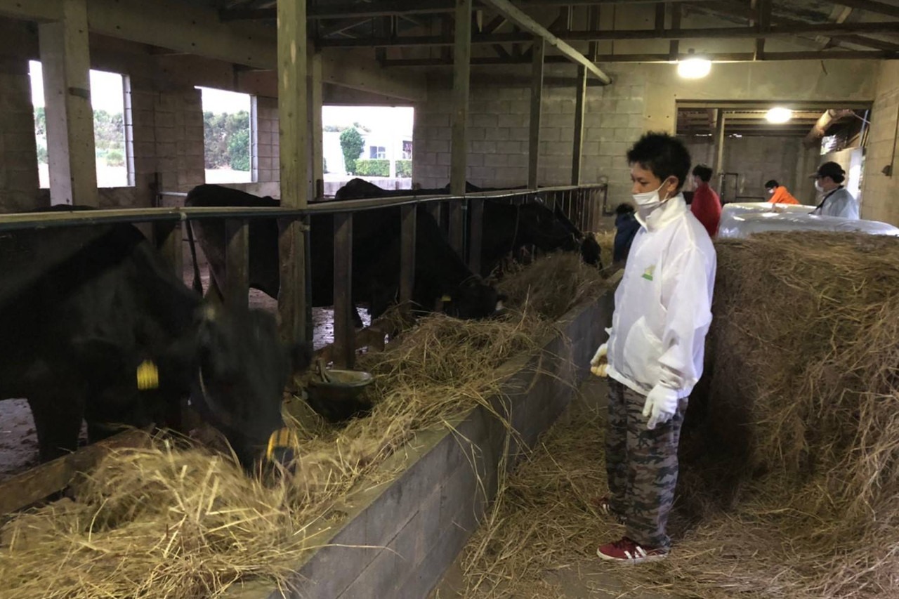家業体験をした人は、牛に餌やりをしたり牧草集めを行いました。