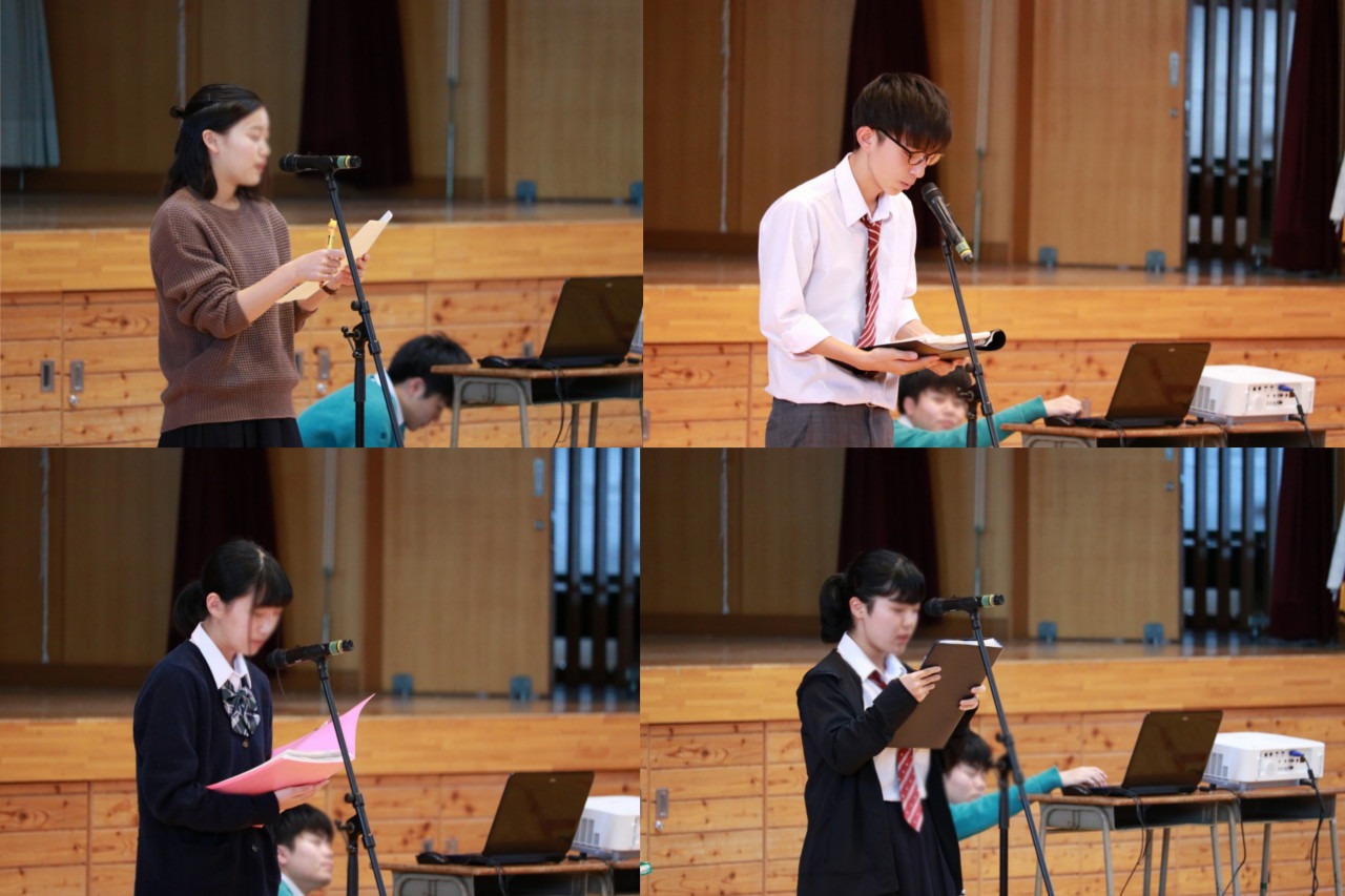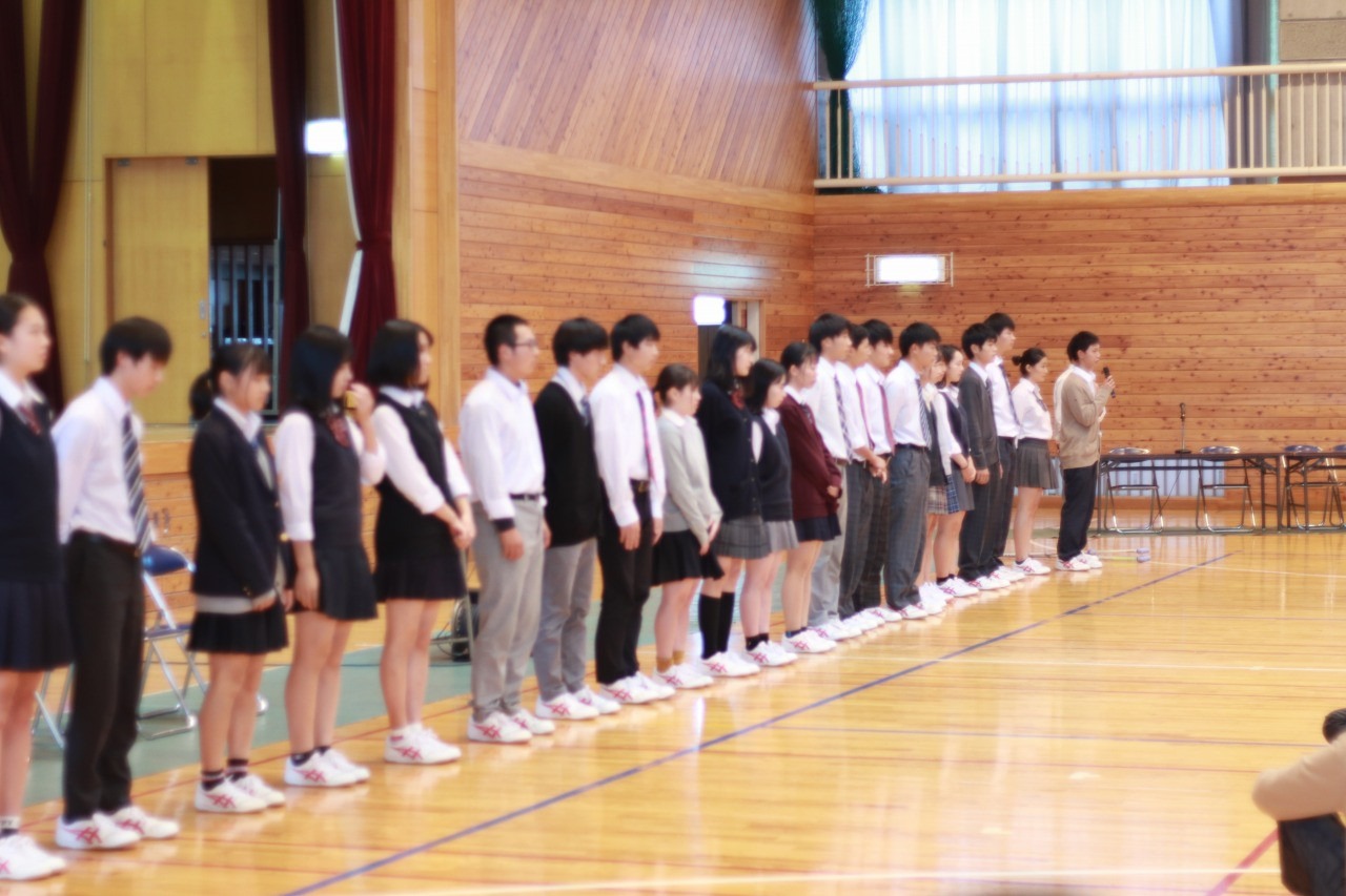 その後、新生徒会の発表がありました。新会長を始め新委員長が、自己紹介しました。