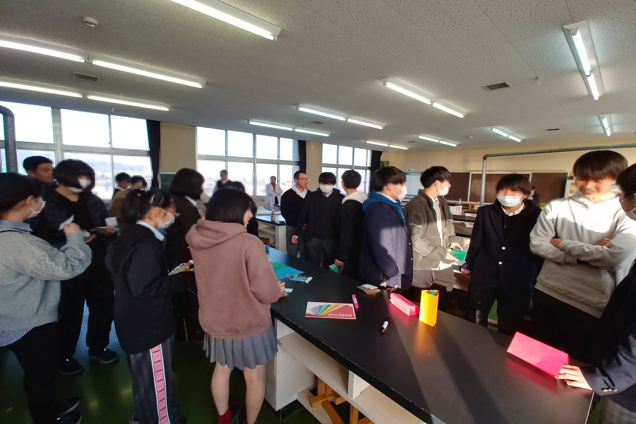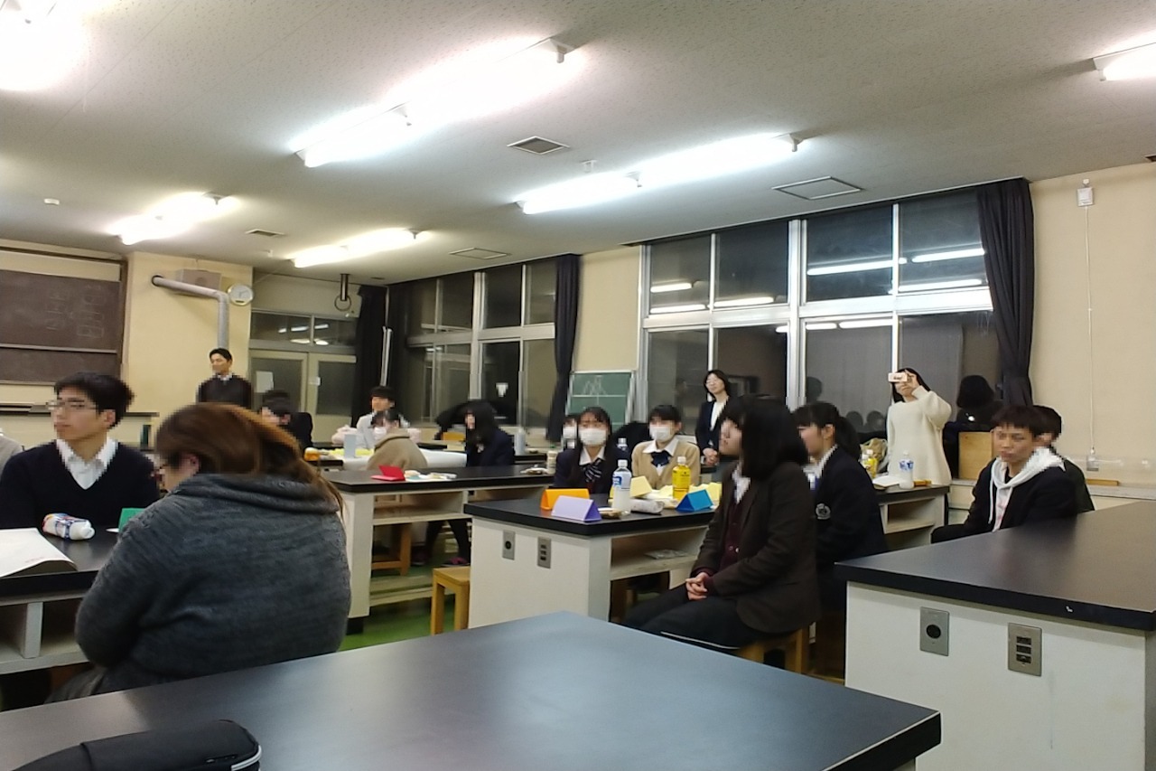 参加者は6班に分かれて、1~3班は「普段の服装、イベント時の服装」について、4~6班は「特進クラス、進路について」を各班リーダーを中心に話し合い(ディスカッション)を行いました。