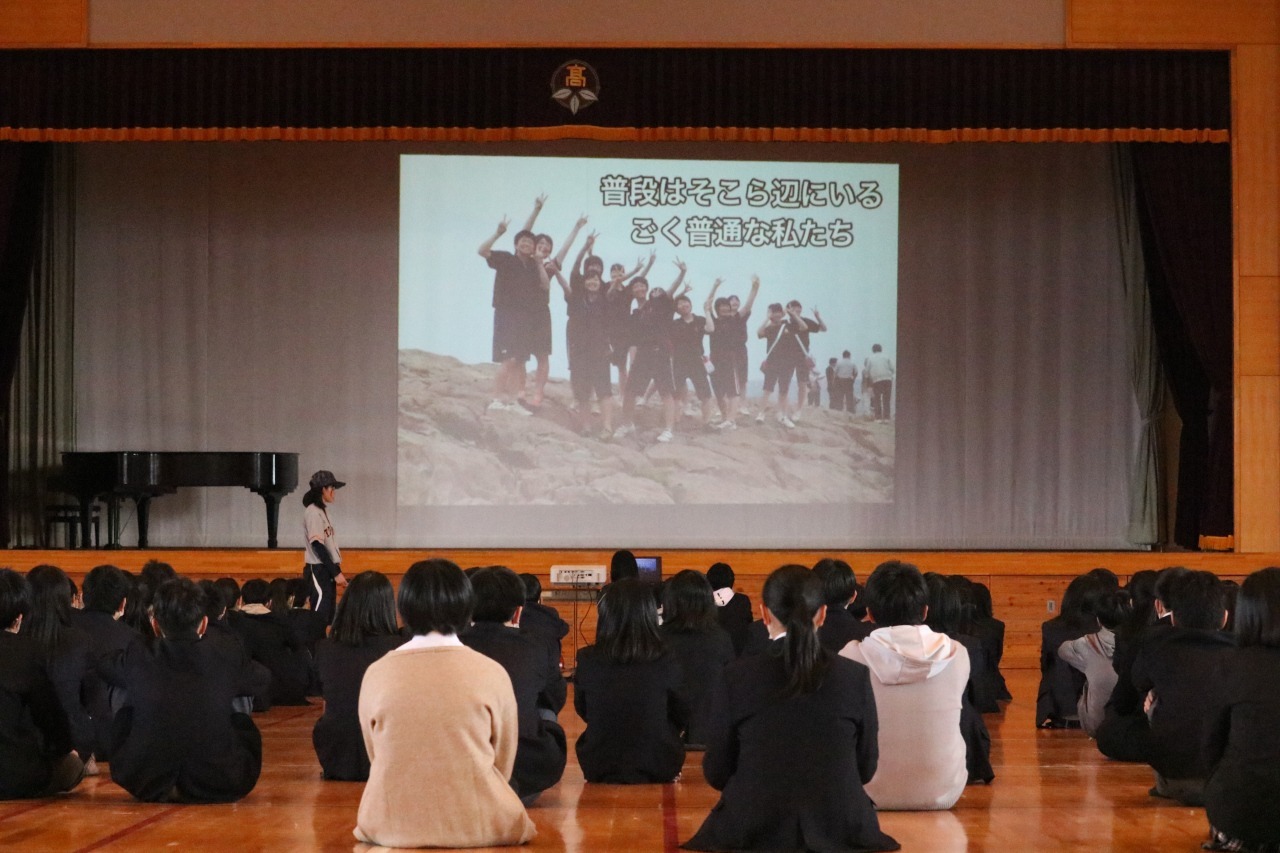生徒会からは、PVで「篠高生の1日」と題して役員が篠高生を演じました。1年生の皆さんは、ぜひ充実した篠高ライフを送れるように篠高に早く慣れましょう!