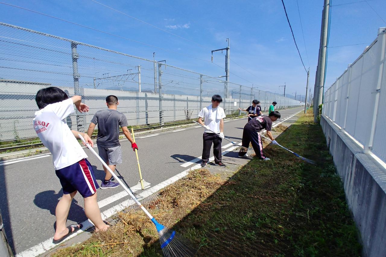 当日はたくさんの生徒会役員、PTAの方が参加し、協力して学校整備を行いました。ロッカー裏をモップで掃除したり、線路沿いの道の草取りをしました。