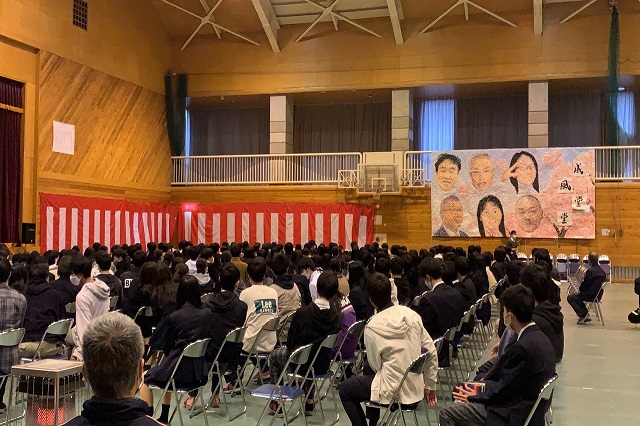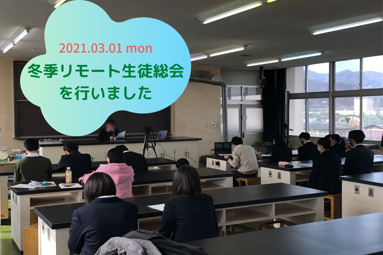 コロナ禍ということで、3密を避けたリモートでの冬季生徒総会が執り行われました。令和3年度新役員での生徒会初めての活動でした。