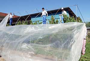 防鳥ネット張り |