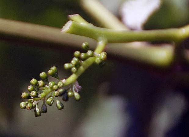 ブドウは開花前の花穂(花房)の整形が必要で、3.5cmから4cm程度に調整しなければなりません。多くのブドウ品種ではこのような方法で行いましたが、「ルーベルマスカット」及び「BKシードレス」品種は、「課題研究」として別な方法で実施しました。「ルーベルマスカット」品種は、すでにジベレリンの低濃度液の花穂散布を実施しており、多くの花穂では第1支梗(しこう)を残す方法で行いました。「BKシードレス」品種は、九州大学の育成者が花穂の成形法を農業専門誌で紹介しており、その方法で実施しました。 今年度は成育が8日程度早く、「巨峰」品種を全て切ったので、全体的なブドウの結果面積が大幅に減少しており、数日で無事終了しました。 |