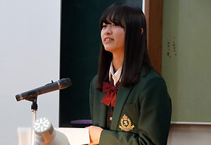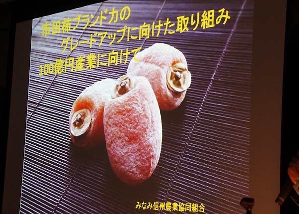 課題研究発表会 閉会行事 JAみなみ信州 果樹に関する講話 「市田柿ブランド力のグレードアップに向けた取り組み 100億円産業に向けて」 講師: JAみなみ信州農協 営農部果実課長 新井 利彦 氏 |