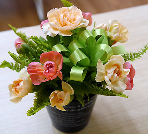 令和2年度の中学生体験入学は、草花関係の講座に関しては、2講座開講しました。 毎年人気のある「やさしいフラワーアレンジメント」講座は、100周年記念棟「蛟竜館」を会場としました。「蛟竜館」は空調機器も備わり、とてもきれいな快適な環境にて実施できました。事前に作成した各種のアレンジメント作品は、会場内マッチしており、参加した中学生に草花の魅力をアピールできました。 用意した花材を用いて、参加した中学生は本校草花科学コース選択生の補助もあり上手に作品を仕上げていました。 |