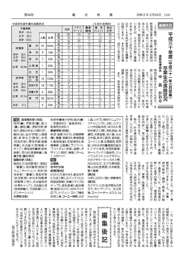 | 稲丘時報第84号を発行しました。各同窓会支会への配布は2月下旬から3月中旬を予定しております。