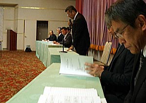 会長挨拶の後、議長が選出され、平成29年度の事業報告、会計報告、監査報告及び平成30年度の事業計画(案)及び予算(案)、役員選出について審議されました。議事に当たり、来賓が紹介され、本校校長が挨拶を行い、校内事務局長が同窓会の近況報告を行いました。 議事が審議されると、恒例の懇親会です。懇親会の際、退職されるお二人の卒業生を送る会も開かれました。本校卒業のお二人の市会議員にも出席を賜り、懇親会を通じて同窓生間の親睦が深まったひとときでした。 |