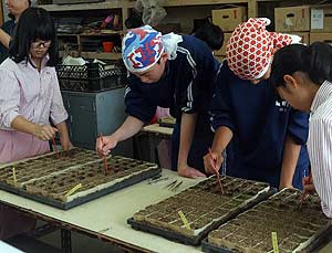 長野県下伊那農業高等学校農業クラブは、恒例の飯田市立東中学校との第1回「花いっぱい交流会」を、5月18日(金)に本校草花実習室にて実施しました。、フレンチマリーゴールドの4種類の種子をまき、交流会は和気あいあいとした雰囲気の中でとても充実した交流ができました。次回は6月15日(金)に予定されています。