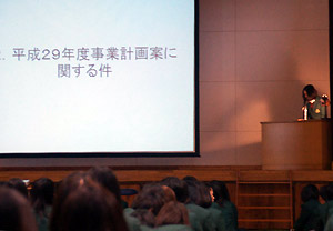 平成29年度 校友会総会 平成29年 4月27日(木) 各種議題が拍手にて承認される! |