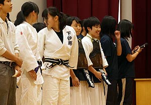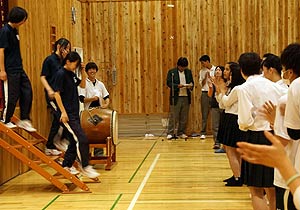 長野県高等学校総合体育大会(通称:インターハイ県大会)に出場する各運動班の壮行会は、農業クラブ校内発表会の後引き続き実施されました。 南信高等学校総合体育大会を勝ち抜き、県大会に出場を決めた柔道班、剣道班、陸上班、山岳班、卓球班の選手を、全校で激励・壮行しました。出場選手は、各班のユニフォーム姿又は制服にて全校生徒の中央を堂々と入場してきました。各班ごと順番に登壇し、南信大会の結果が校友会役員より報告されるとともに、県大会に臨む決意表明が各班代表者からなされました。 校長先生、校友会長の激励の挨拶の後、応援委員による全校応援歌(MP4形式20.9MB)が体育館内に響き、全校で壮行しました。選手の皆さんの県大会での活躍を祈念し、拍手で送り出し、盛大に壮行会が開催できました。 |