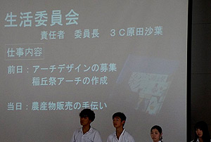 本校校友会では、校友会最大の行事である第64回稲丘祭の成功に向け、稲丘祭討論会を開催しました。7月19日(木)LHRの時間を利用して、校友会役員が議長をつとめ、昨年度の稲丘祭を振り返りつつ、今年度の稲丘祭の組織・役割等の議題に対して審議しました。校友会原案が可決され、第64回稲丘祭に向け、夏季休業明けから本格的に準備が進められます。