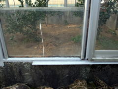 果樹にはガラス温室が一つありますが、今まで肥料置き場として使用してきたため、非常に老朽化していました。昨年度、ガラス温室の有効活用及び7年後に迎える100周年記念事業に、ガラス温室内に温州ミカンを3本定植しました。しかし、このままの温室では冬の寒さに耐えられず枯死してしまう可能性があります。そこで、園芸クリエイト科3年果樹専攻生で、下記の点について修繕を行いました。