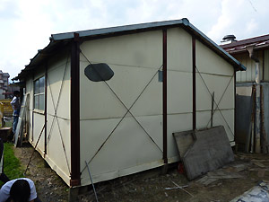![]() 小屋の中を仕分けし、半面にモノをまとめています。まだ、時間がかかりそう・・・ |