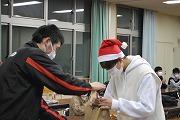 校友会企画の冬の親睦行事では学年対抗ゲームやプレゼント交換をして全校で楽しみます。