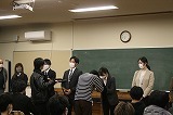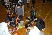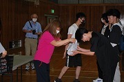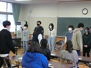 在校生と卒業生が一緒にレクリエーションを楽しみ、卒業生はお別れの挨拶をします。