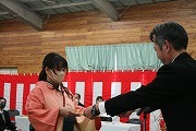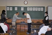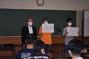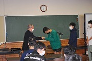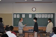 選挙で選ばれた新役員に、教頭先生より任命書が手渡され校友会の新体制がスタートします。