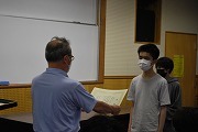 2期制の本校定時制では9月までが前期となります。資格取得者、皆勤精勤者の表彰が行われます。