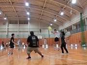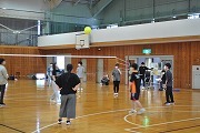 体育の授業で練習してきたワンバウンドバレーなどの種目でチームに分かれて優勝目指して競い合い、親睦を深めます。