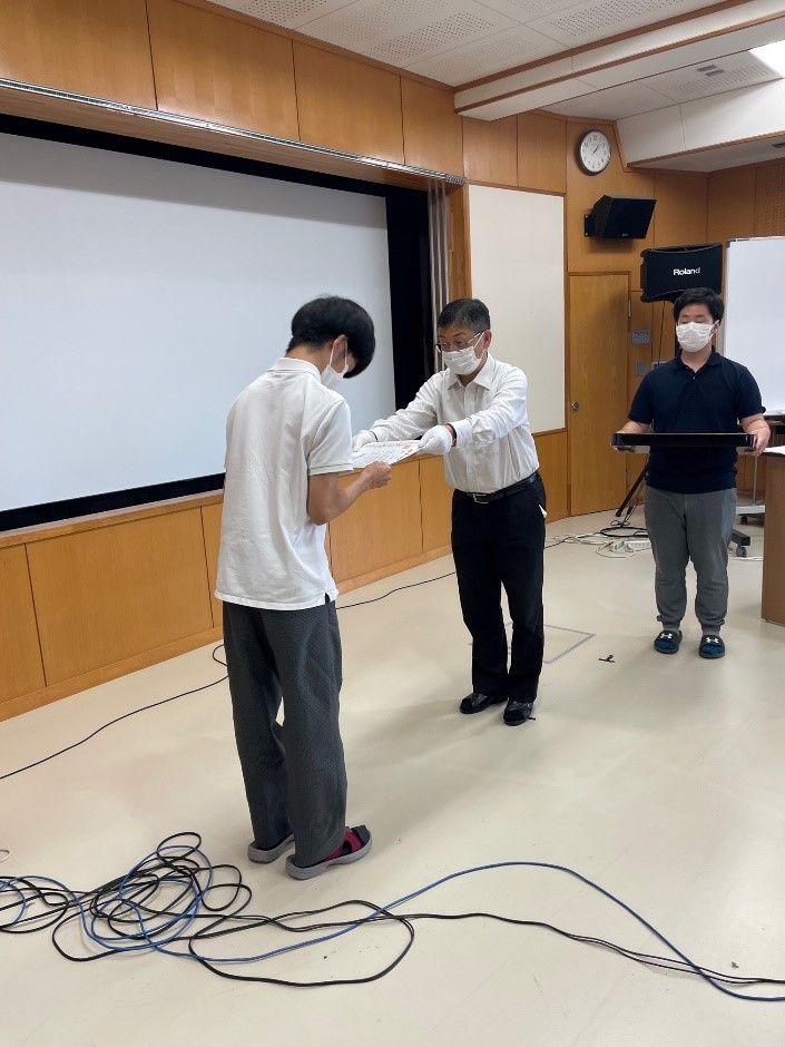 7月27日、夏休み前の全校集会・表彰式・壮行会が大講義室と各教室をon-lineでつなぎ、おこなわれました。