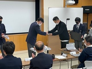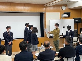 発表後の講評では、様々なご意見をいただきました。「開発した商品のターゲット層やデザイン性の選定方法について」や「消費者の声を数値化し比較・検討すること」など探究の仕方についてのご助言や、「地域の課題に目を向け、自分たちの生活や学校・地域を変えていた」・「探究学習によって視野を広げ、学ぶことの意義を自分自身で見出していた」といった蘇南高校の探究学習についての評価をしていただきました。