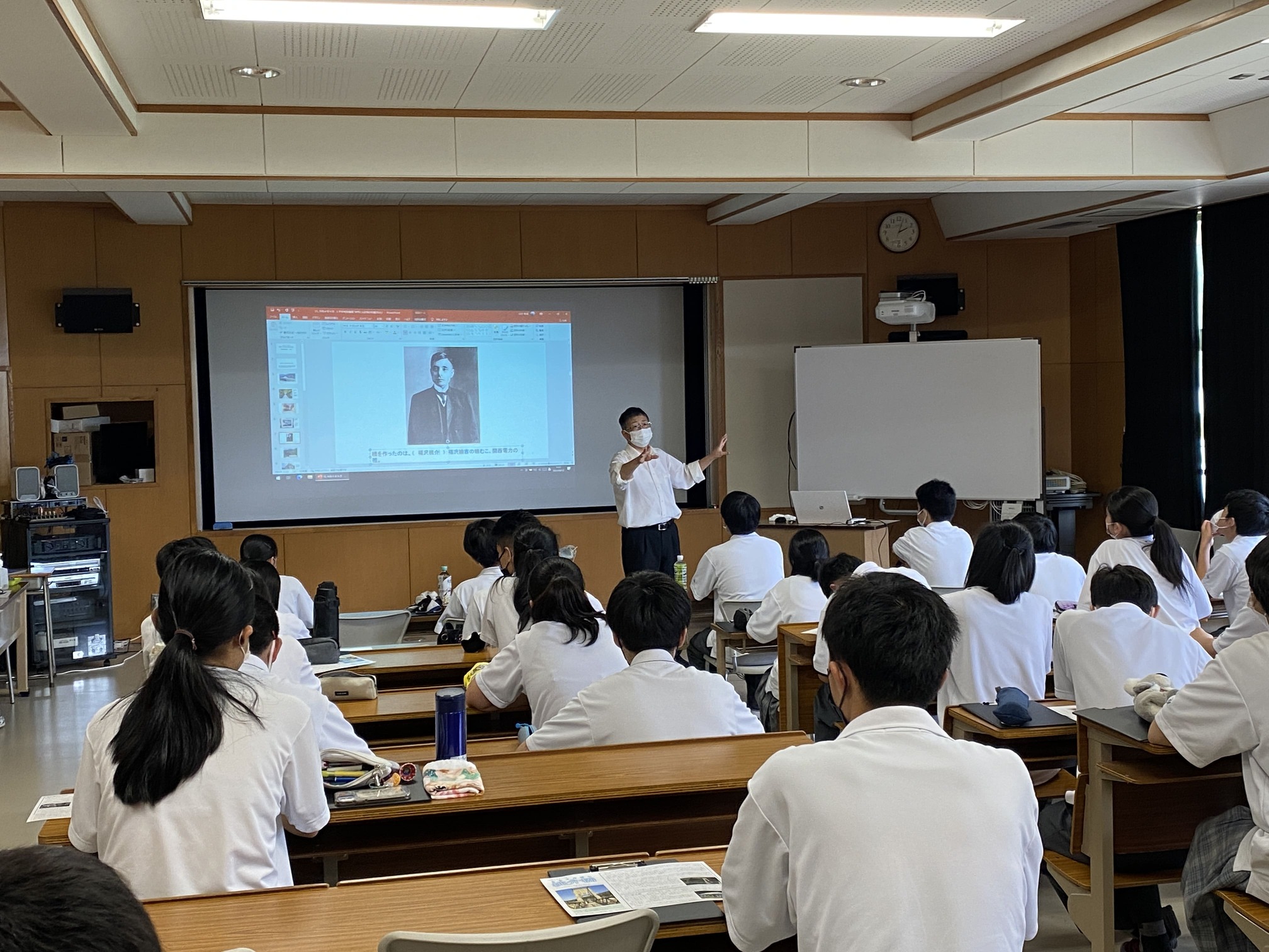 9月12日、1年生の「産業社会と人間」の授業で、「ふるさと探究学」の事前学習として、講演会とフィールドワークが実施されました。