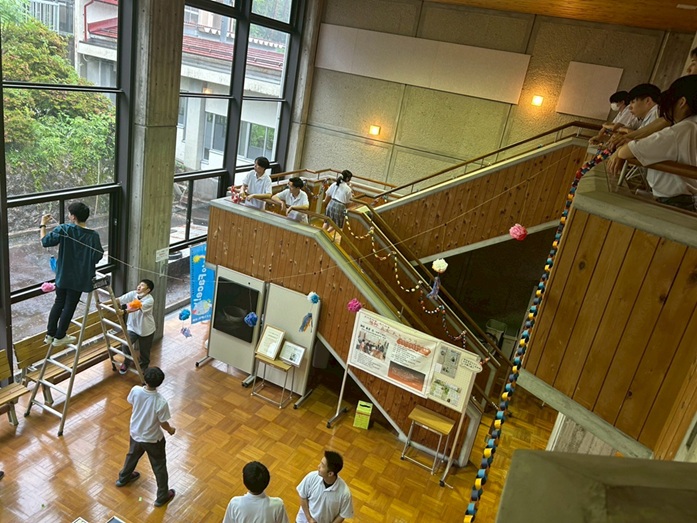多くの来場者を迎えるため、全校での準備は1週間前から始めます。生徒たちはクラスや委員会、部活の仲間と協力しながら、展示や模擬店の準備、個性披露やライブの練習に、気合を入れて取り組みます。
