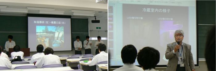 本校の生徒は、昨年までの先輩たちが行ってきた養液栽培ベッドの製作・エアロポニック(噴霧栽培)について、 冷蔵室内での試験栽培、培地の検討など4つのテーマについて発表し、引き続きそのテーマで実験を進めていくと発表しました。