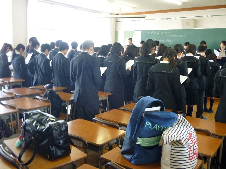 続いて、須坂園芸と須坂創成の両校の校歌2曲を全校生徒で歌いました。