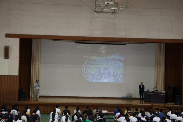今回のご講演では「豊かな創造力で君の未来を拓く」と題し、ご自身の研究成果だけでなく地球温暖化等の環境問題や日本の経済的、学問的危機についてもお話しいただきました。そしてこのような問題を解決するのは君たち須坂高校生なのだ、という熱いメッセージをいただきました。