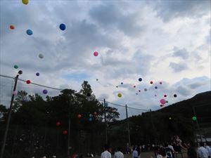 「空飛ぶ風船」 最後は大空を風船で彩り、桜陵祭は幕を閉じました。