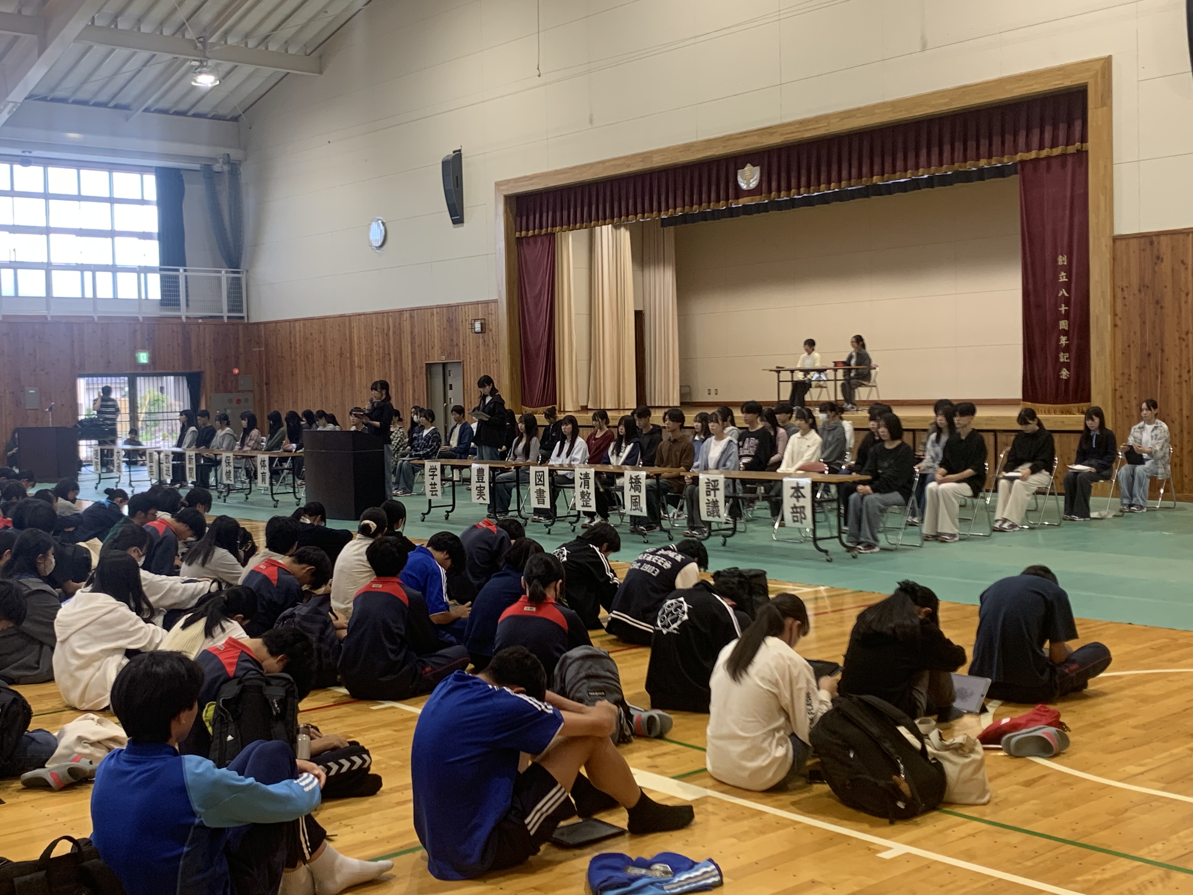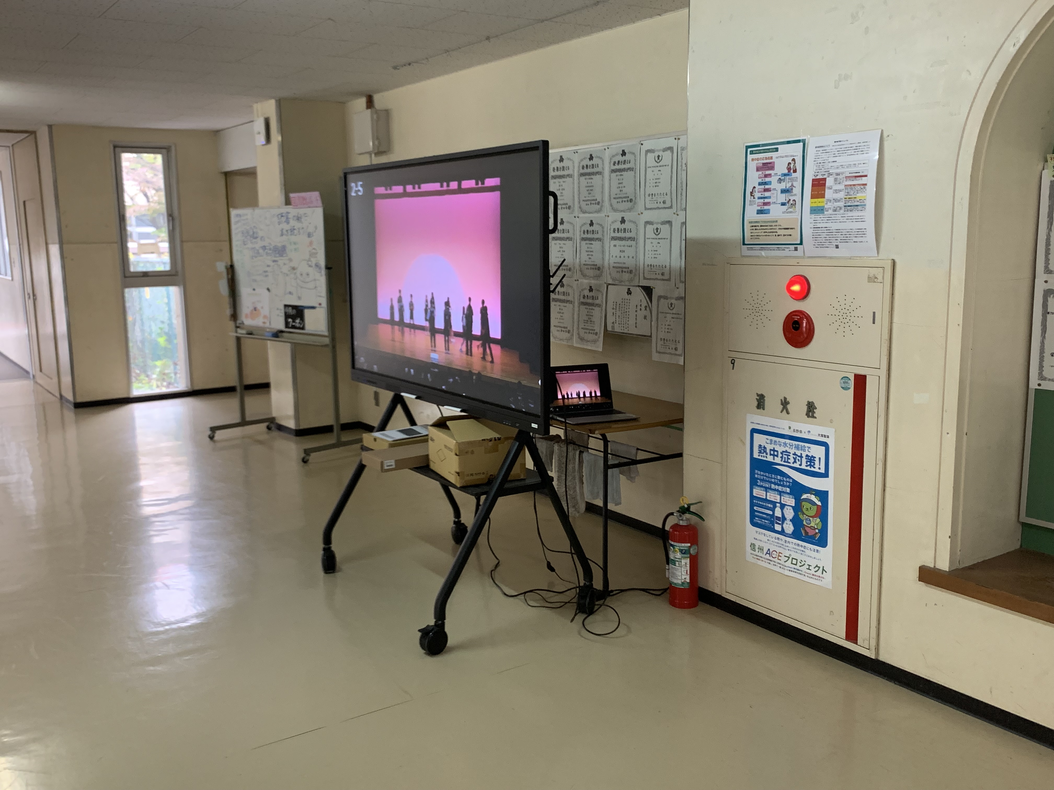 ![]() 昇降口では文化祭のクラス発表の様子を放映しました |