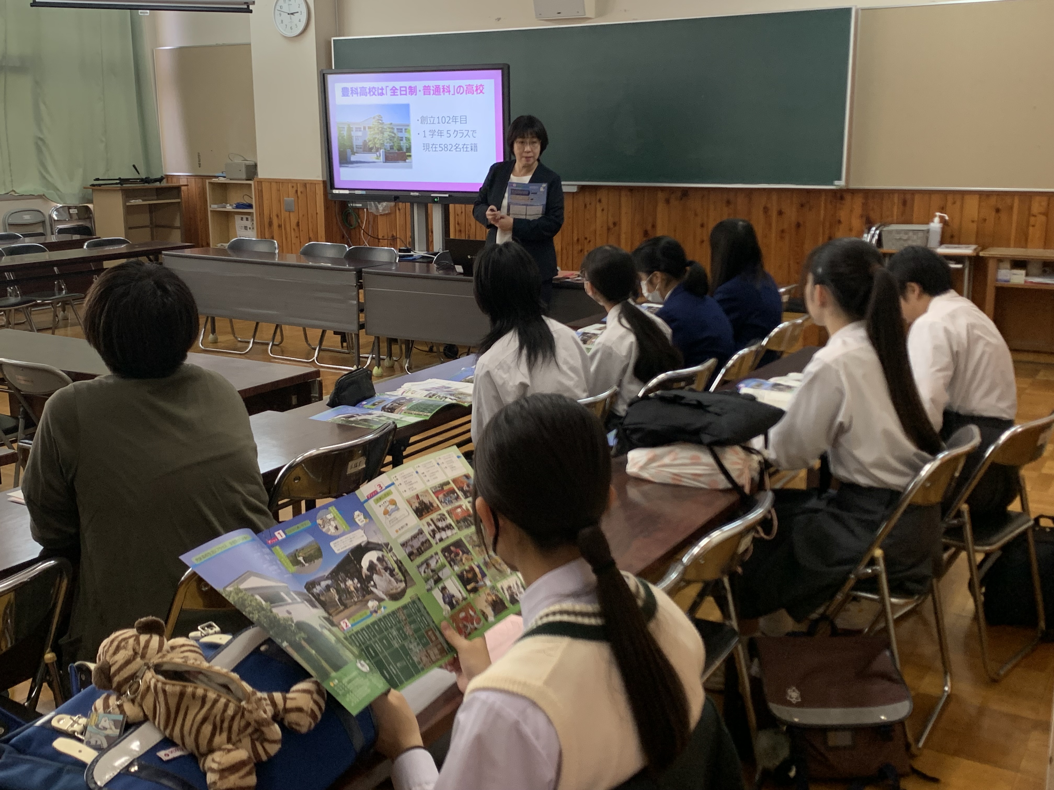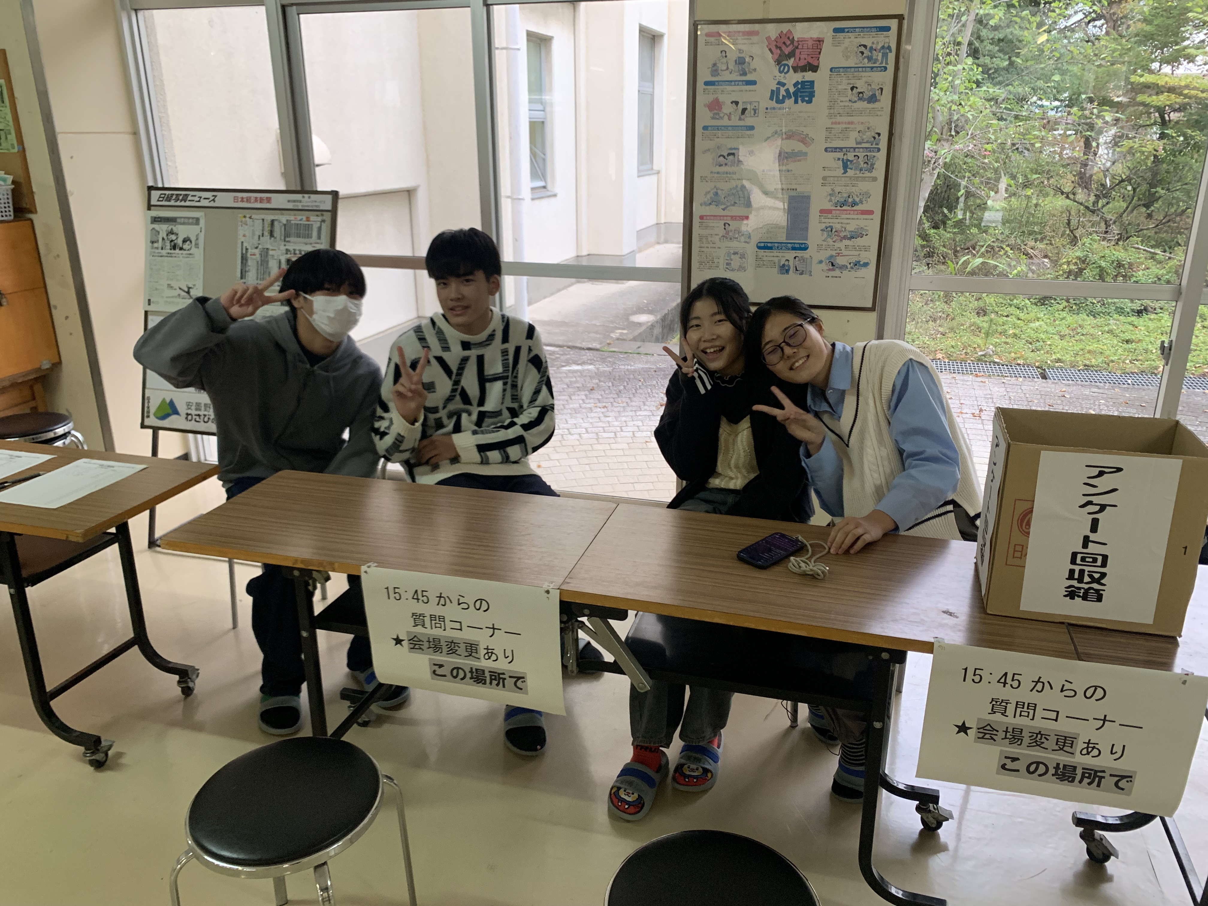 ![]() 生徒会役員が中学生の質問に答えるブースの様子 |