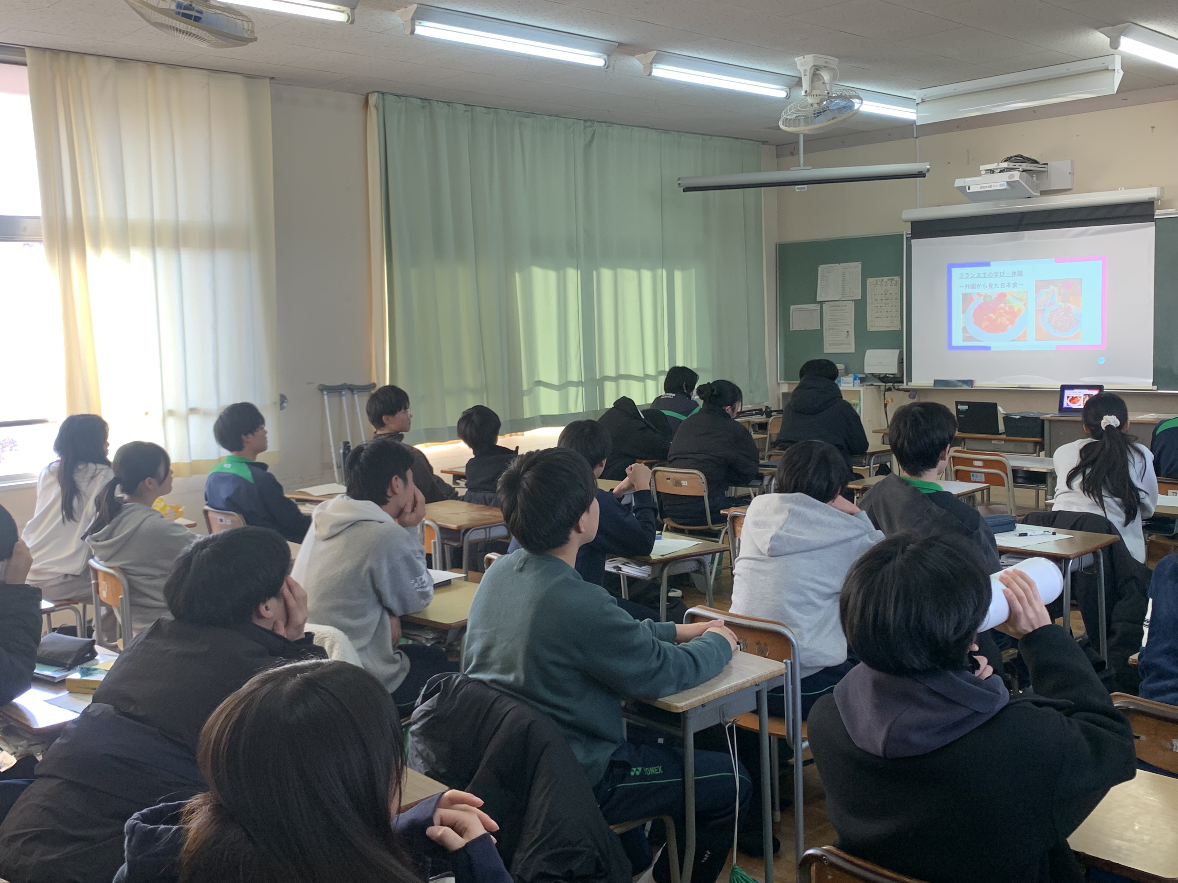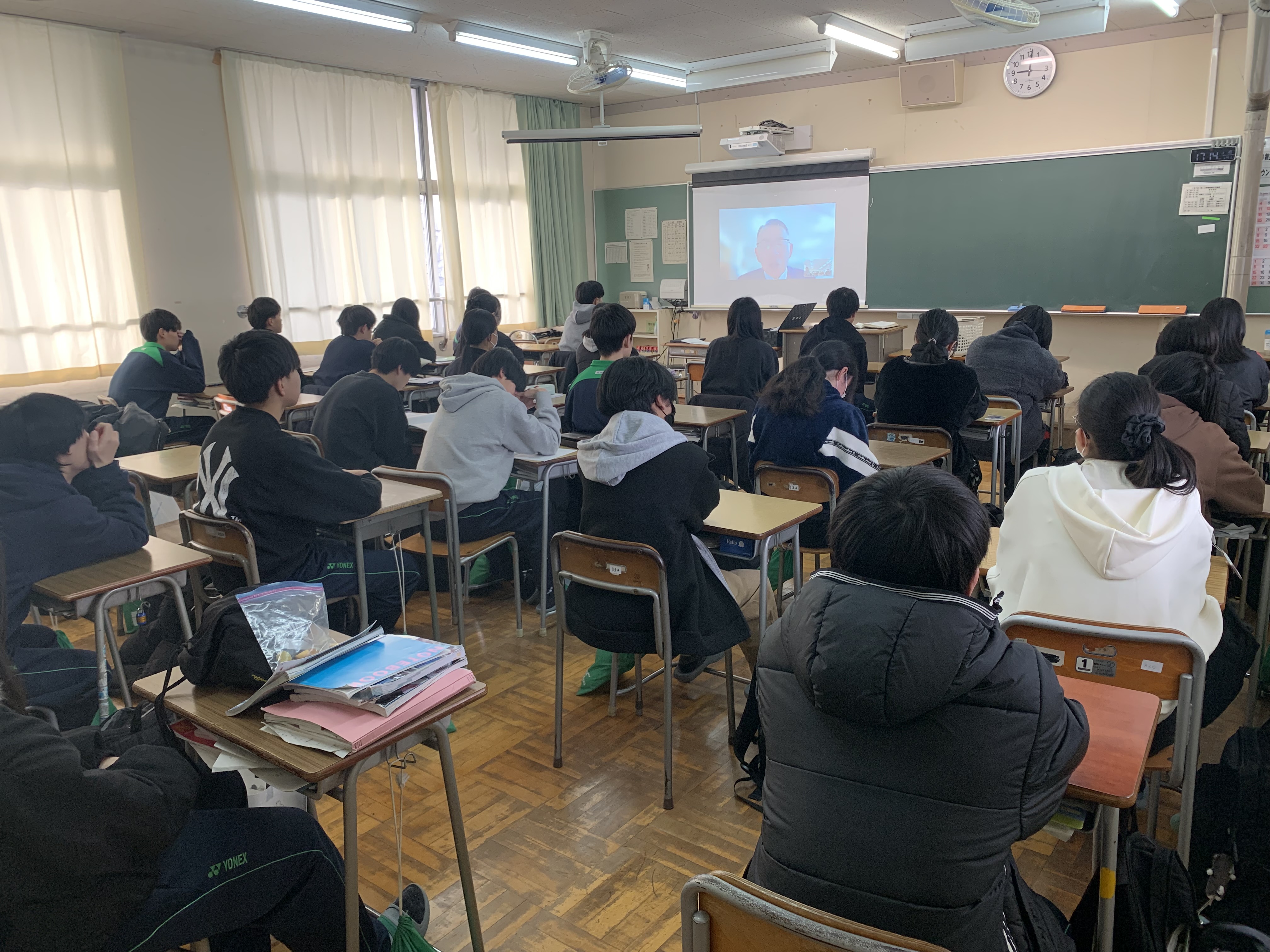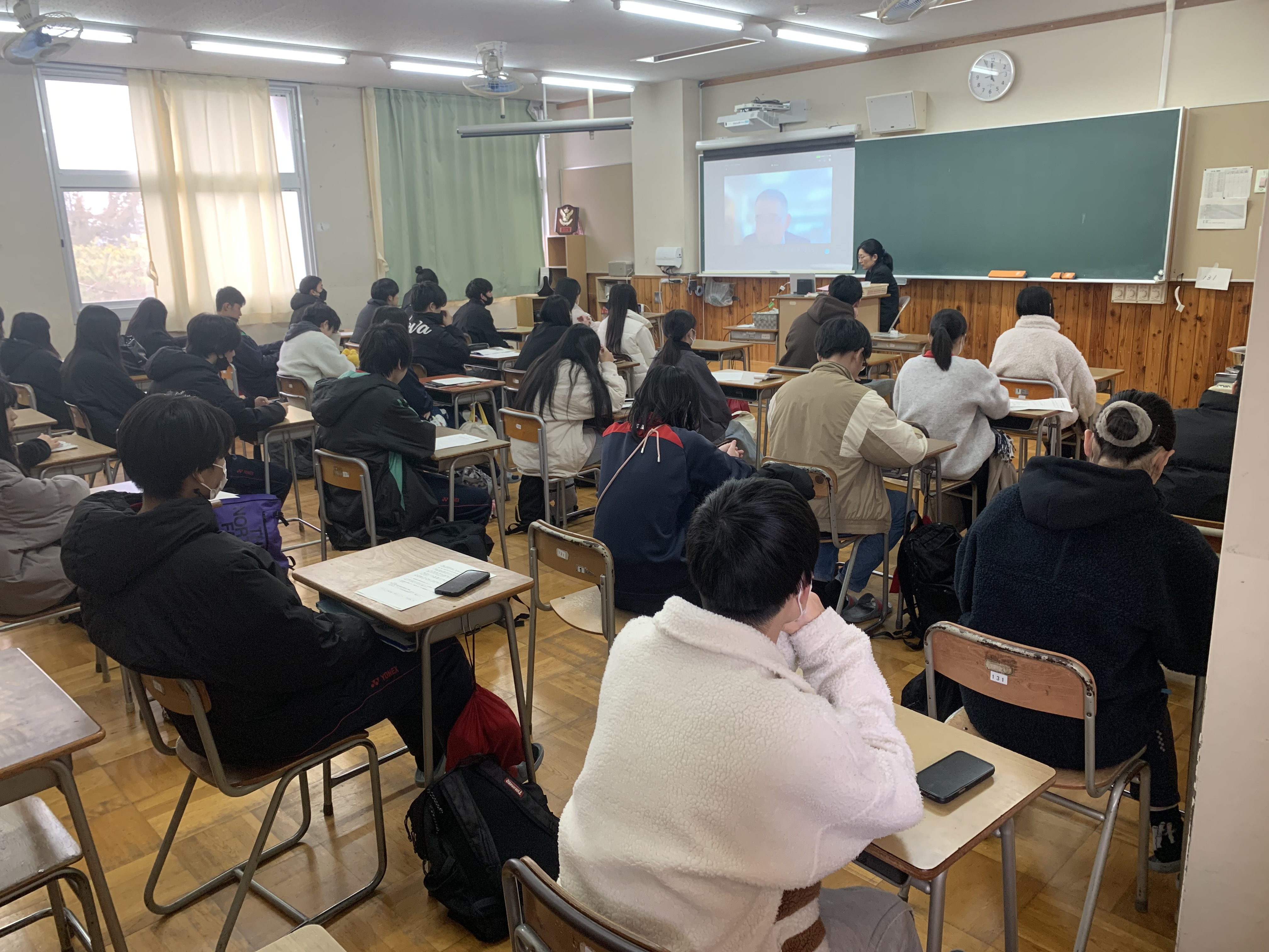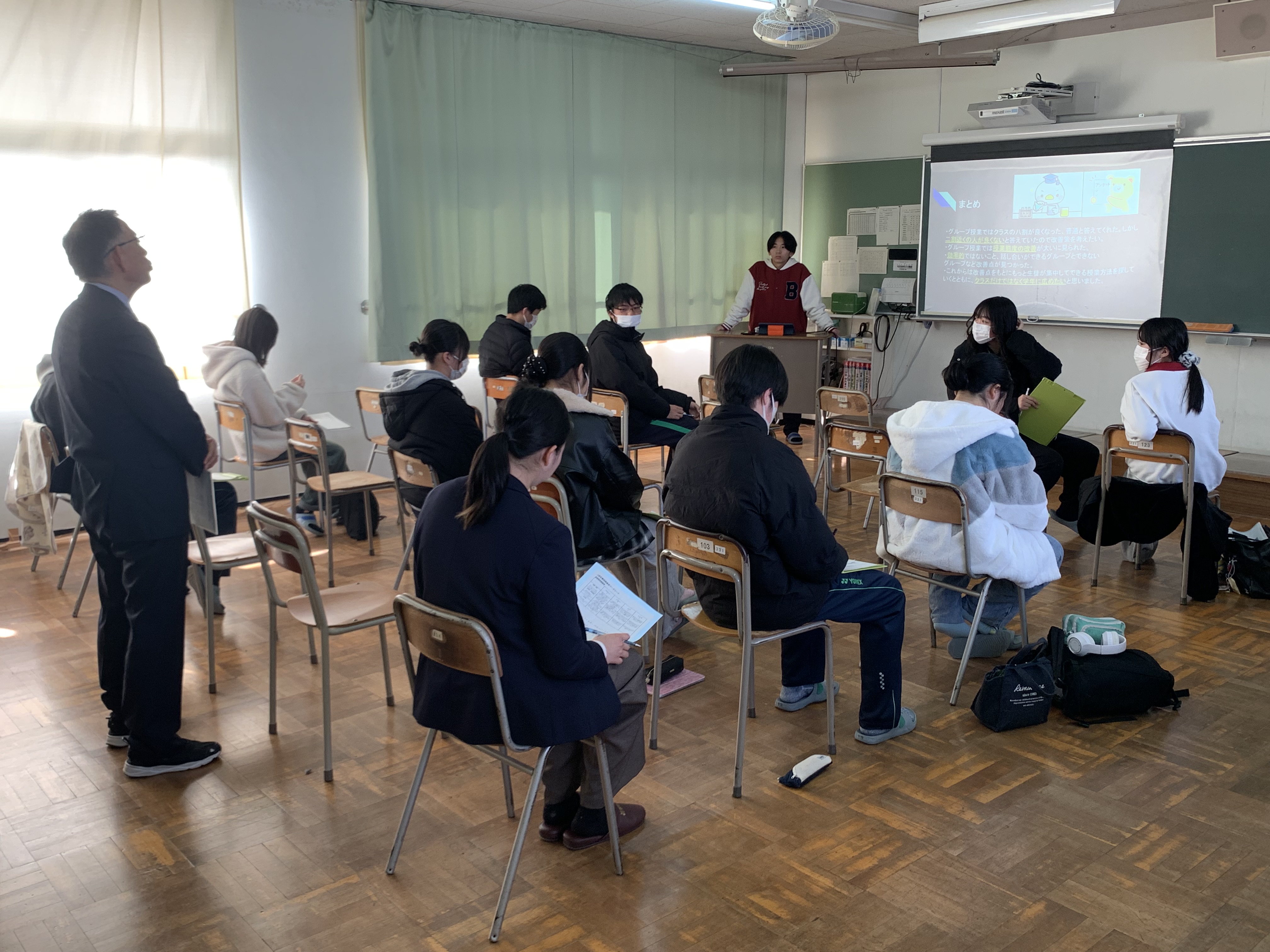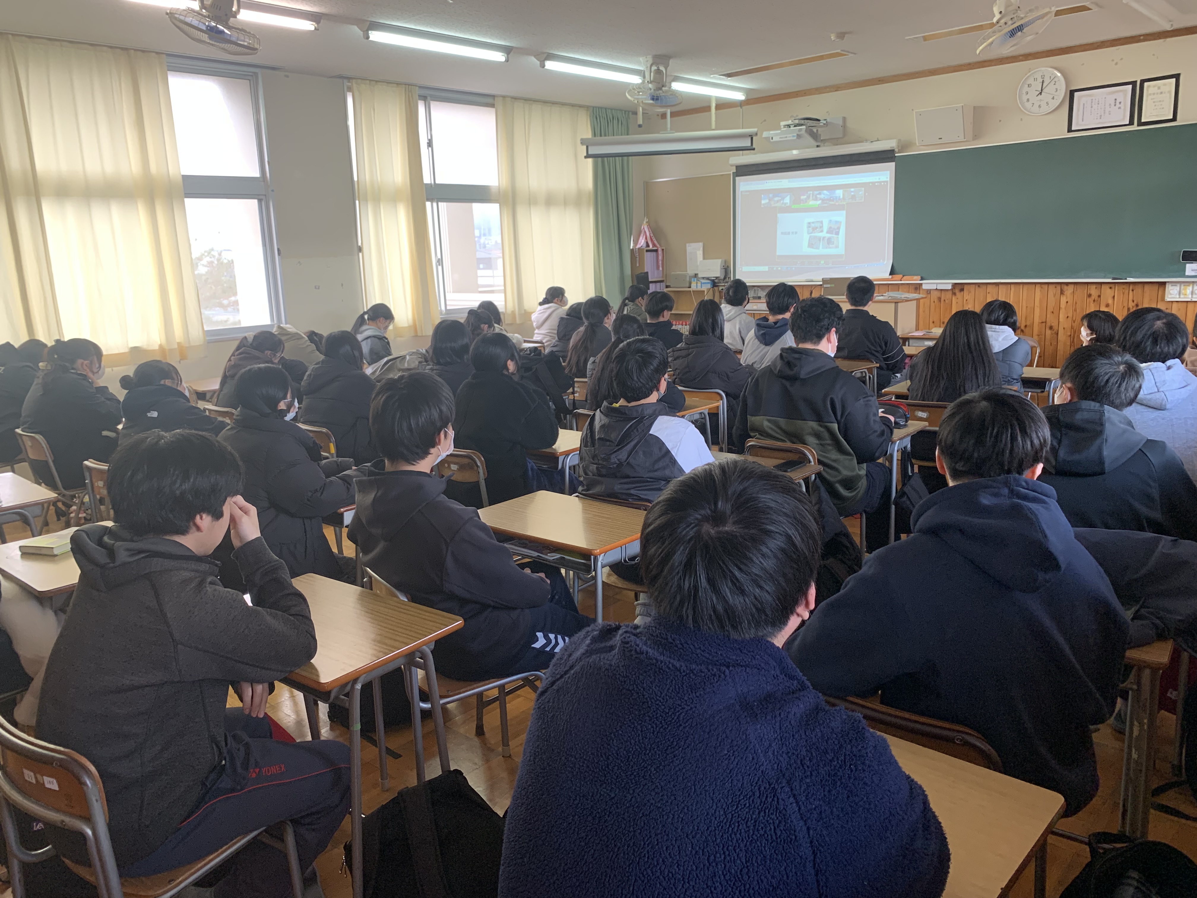 ![]() 発表を聞く教室の様子 |