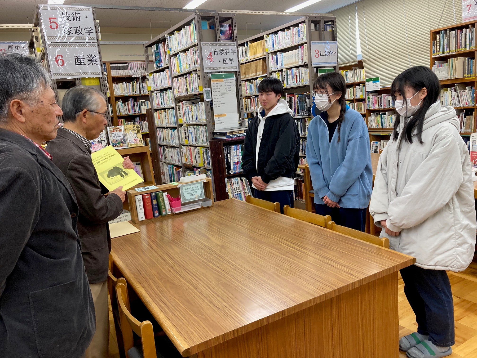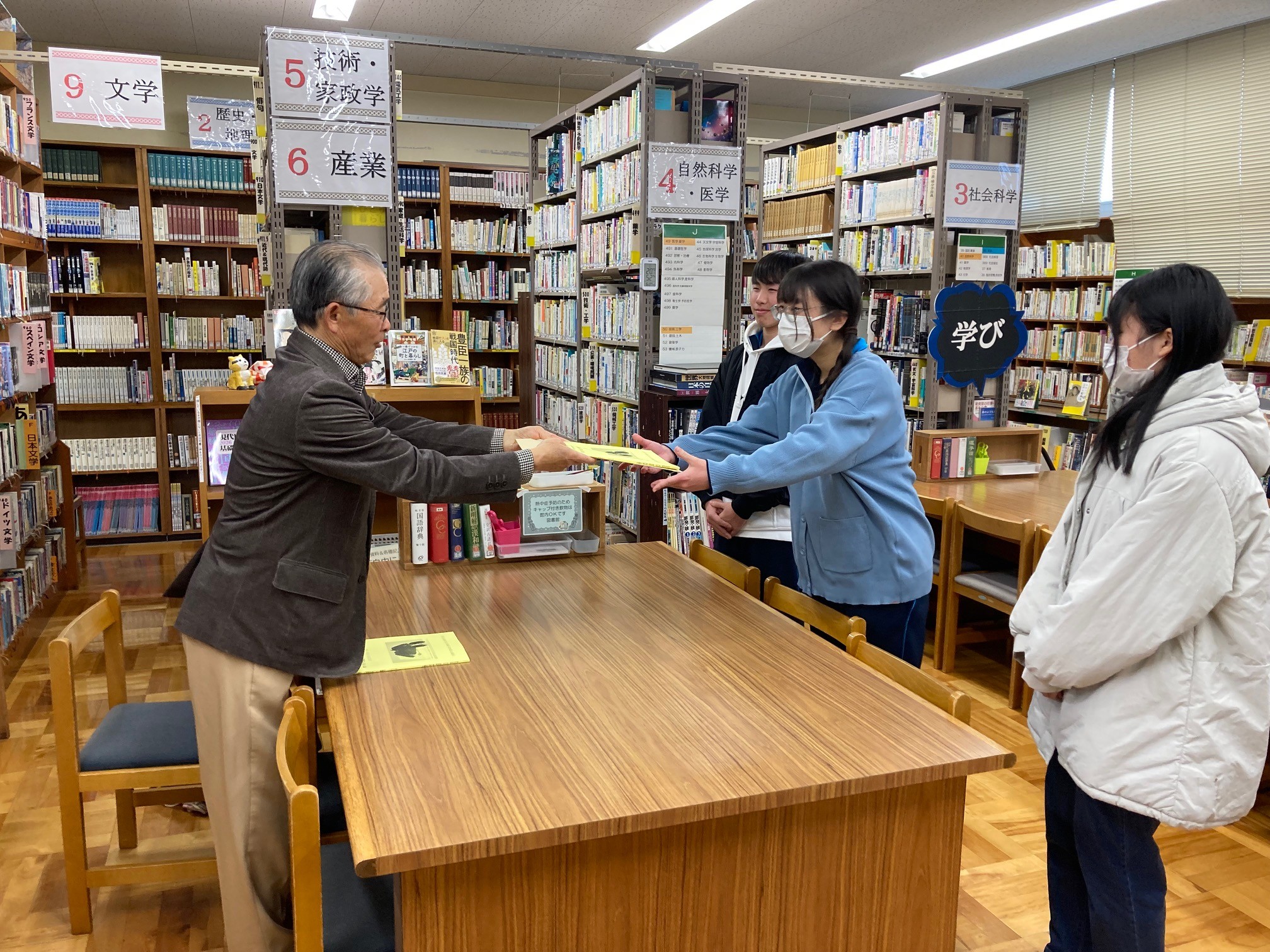 ![]() 蛍光ペンの贈呈の様子 |