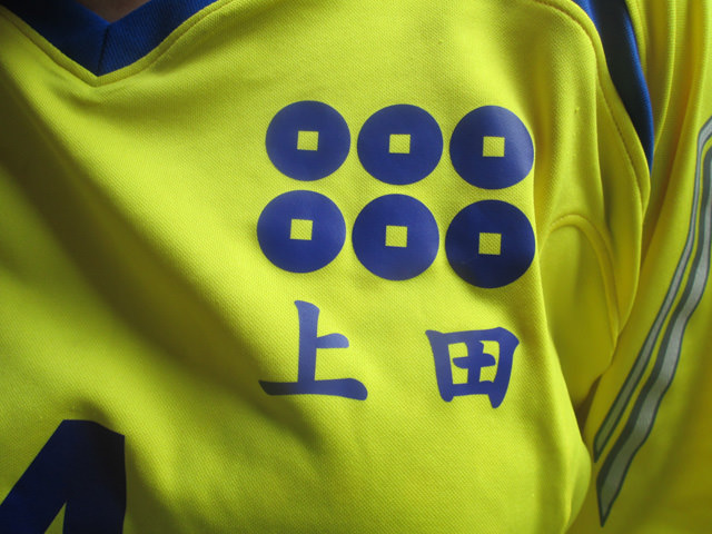 本校班活動生徒のジャージは、真田氏家紋「六文銭」(写真下中)をプリントしていることが多い。