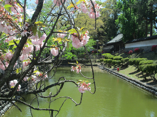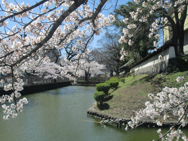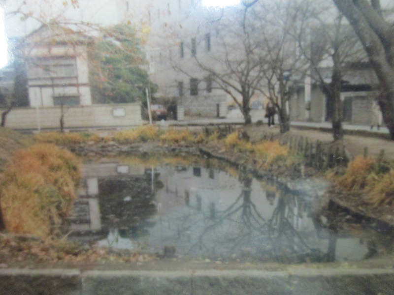 写真中:エンジュ3世。北濠に沿ってもかつては築地塀があった。北濠(画面左下)に地下水が供給されている。
