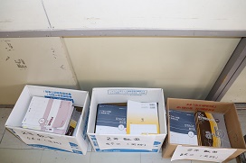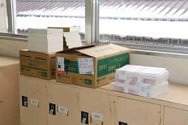 1年生の廊下には数学の教材が積まれていました
