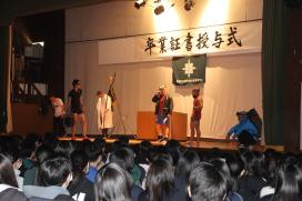 3年生を送る会 卒業式を明日に控えた本日、卒業式予行に続いて、3年生を送る会が行われました。 3年間の思い出をスライドで振り返った後、担任の先生方の出し物が披露され、3年生にとって楽しく、思い出に残る三送会となりました。 3年生の皆さん、明日は卒業式です。思い出に残る卒業式になるといいですね。